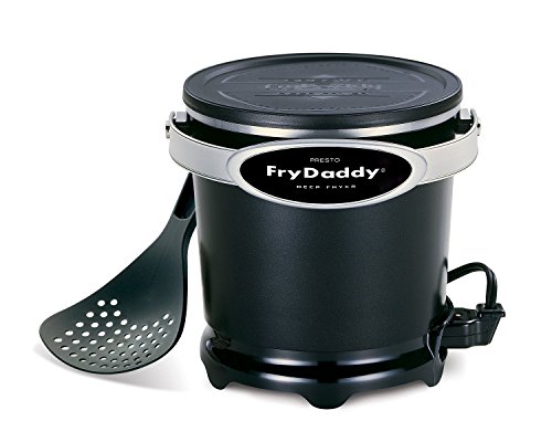 Fries delicious deep fried foods, fast and easy. Makes crispy french fries, shrimp, chicken, onion rings and more. Maintains the perfect frying temperature automatically. Efficient 4:4 oil-to-food ratio makes four big servings with just four cups of oil, saving money on oil. Handy scoop lifts, drains, and serves. No messy basket. Snap-on lid stores oil without spills or odor. Nonstick surface, inside and out, for easy cleaning. Compact size for easy storage. Presto* FryDaddy* electric deep fryer (4-cup capacity) 120 volts AC, 1200 wattsSaves money on oil; Efficient 4:4 oil-to-food ratio makes four big servings with just four cups of oil