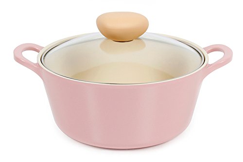 Neoflam cookware is produced with Ecolon ceramic coating. This is an all-natural alternative to traditional nonstick coatings, and it is free of PTFE/PFOA. When Ecolon is applied to the cast aluminum body, the cookware transforms into a deliciously colorful piece with amazing features including a lightweight frame, a durable body, and a scratch resistant, easy to clean surface.